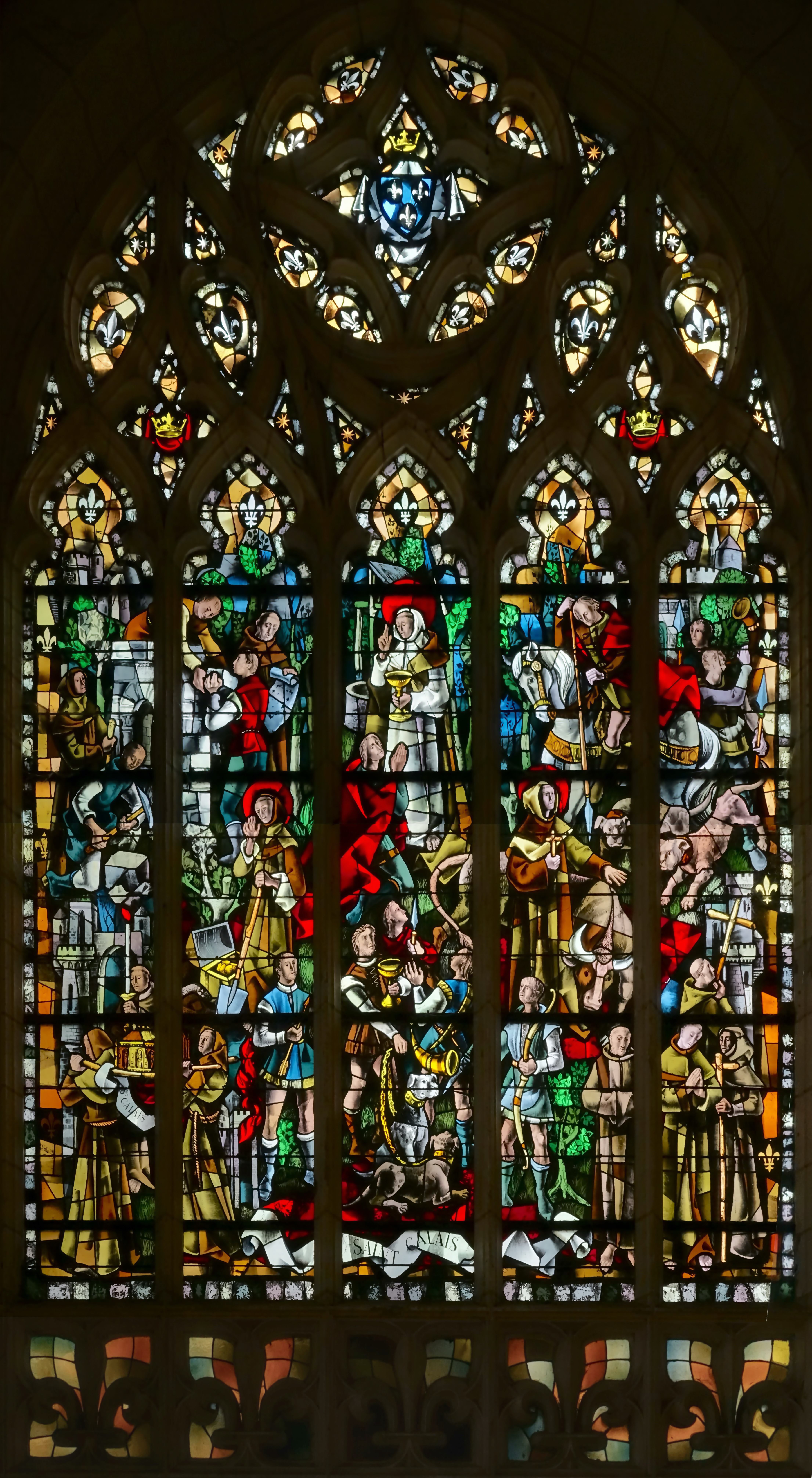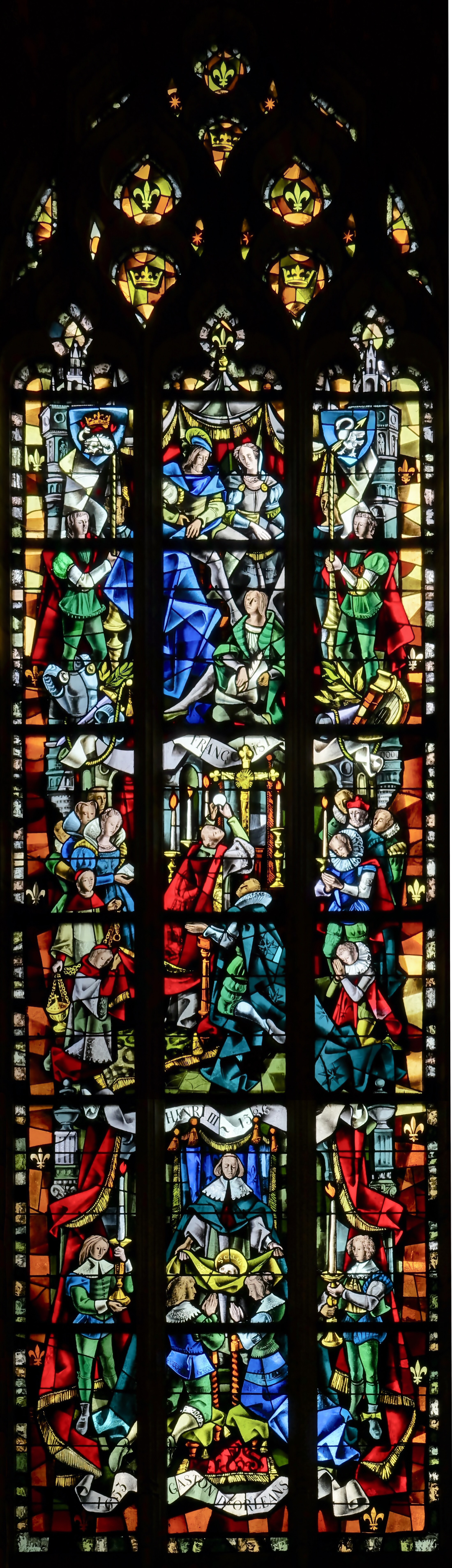 Les vitraux originaux ont été détruits pendant la Seconde Guerre mondiale, remplacés par des créations contemporaines de Max Ingrand en 1957.Ces vitraux illustrent des personnages religieux majeurs, notamment Jeanne d'Arc recevant son étendard avant le siège d'Orléans, et la vie de Saint Calais.