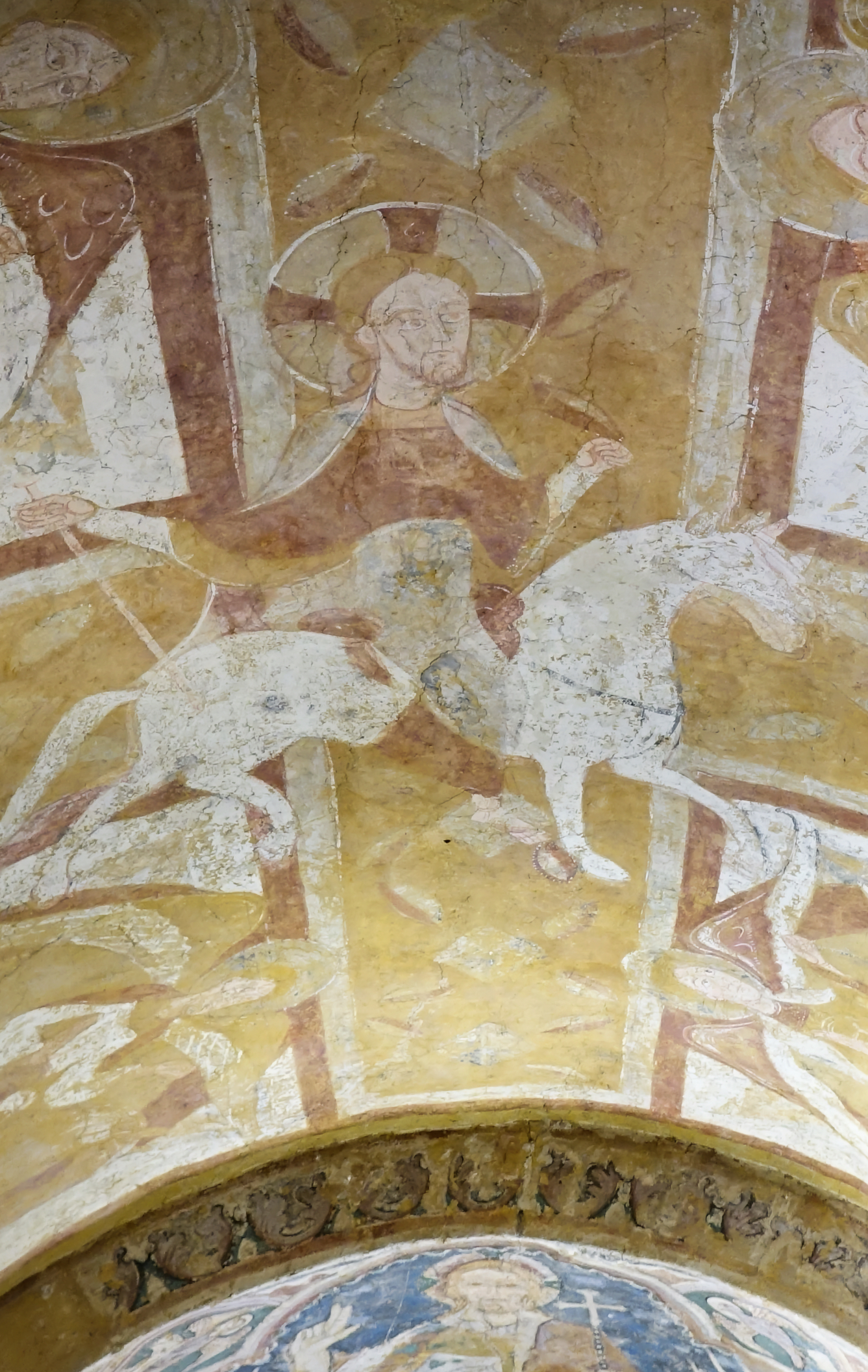 On peut y admirer une fresque romane (milieu 12e siècle) représentant une grande croix, quatre anges à cheval logés dans des médaillons, et au centre un Christ sur un cheval blanc. L'interprétation de ces fresques est énigmatique : passage libre du Christ sur la croix ou apparition du Roi des Rois, le cavalier de l'Apocalypse de saint Jean ?