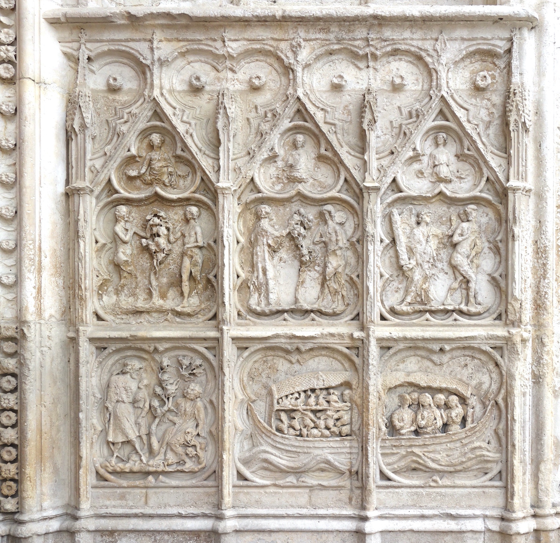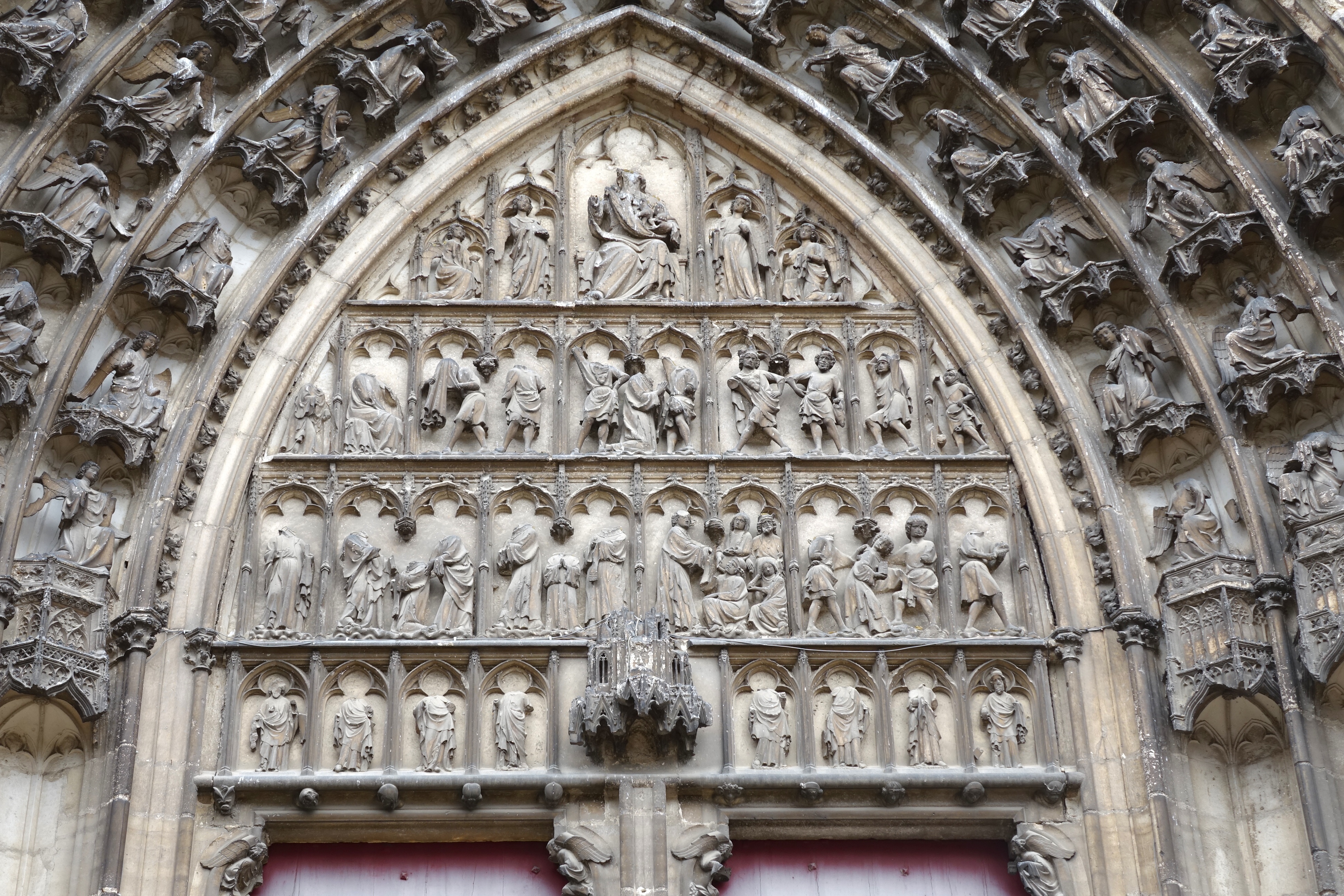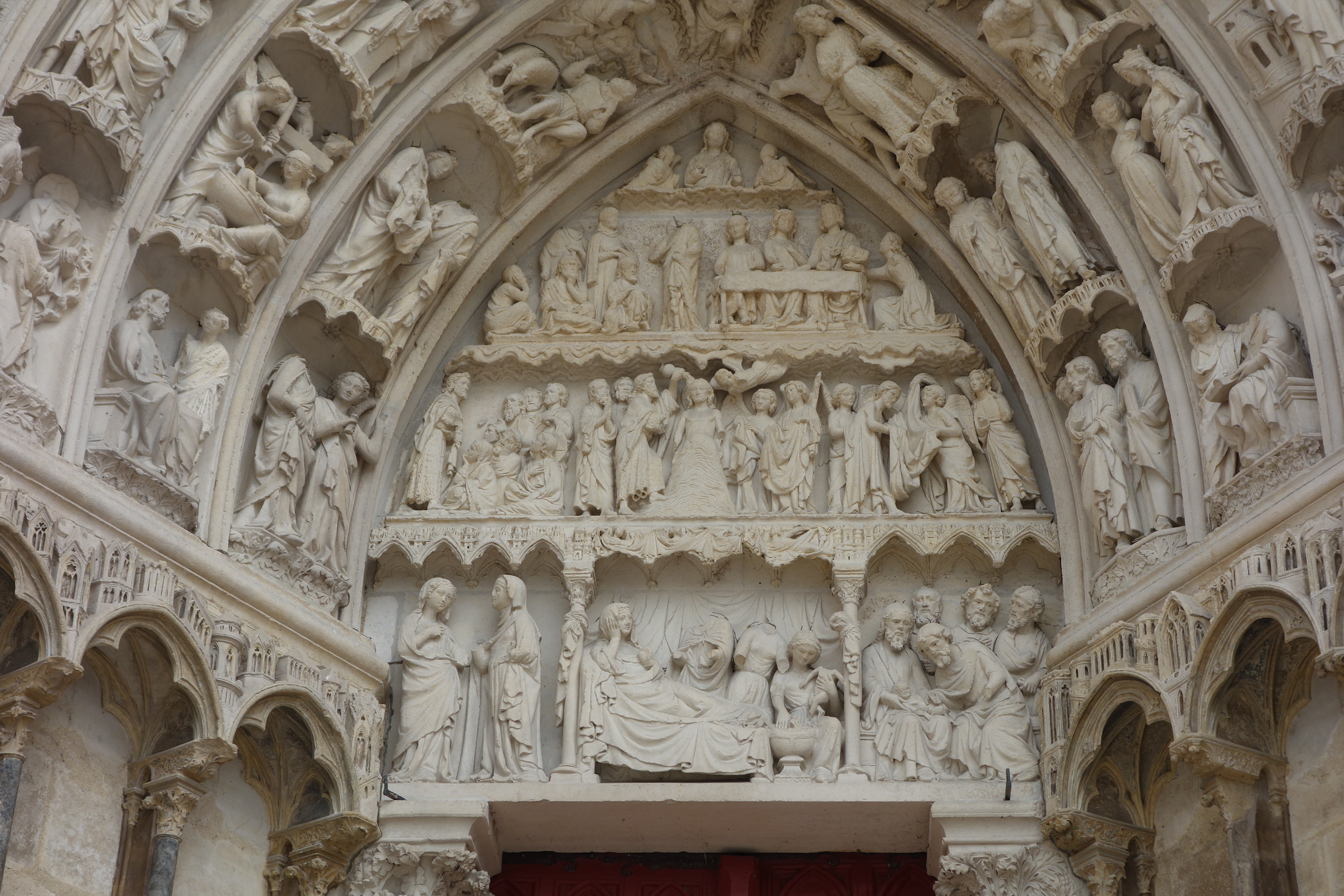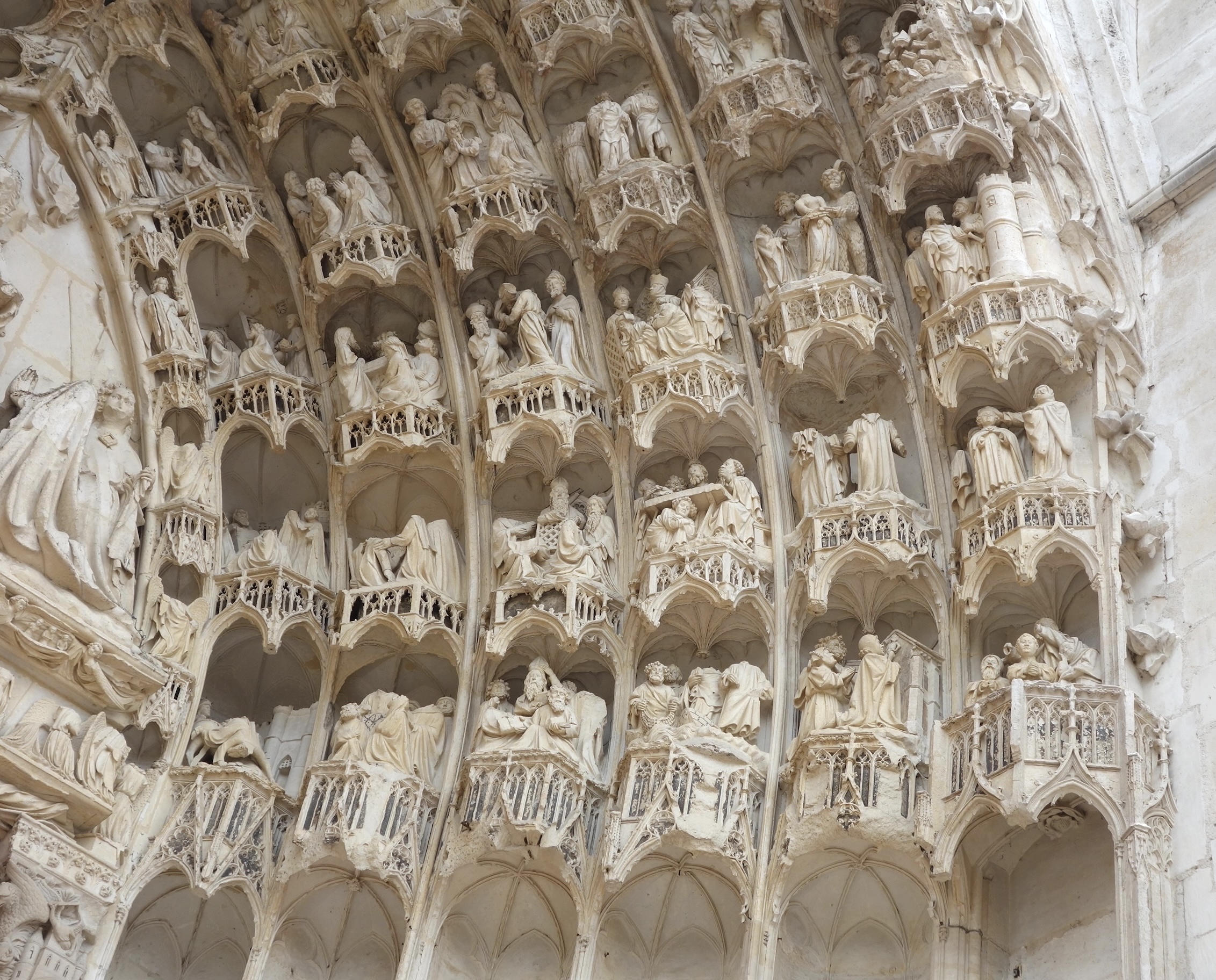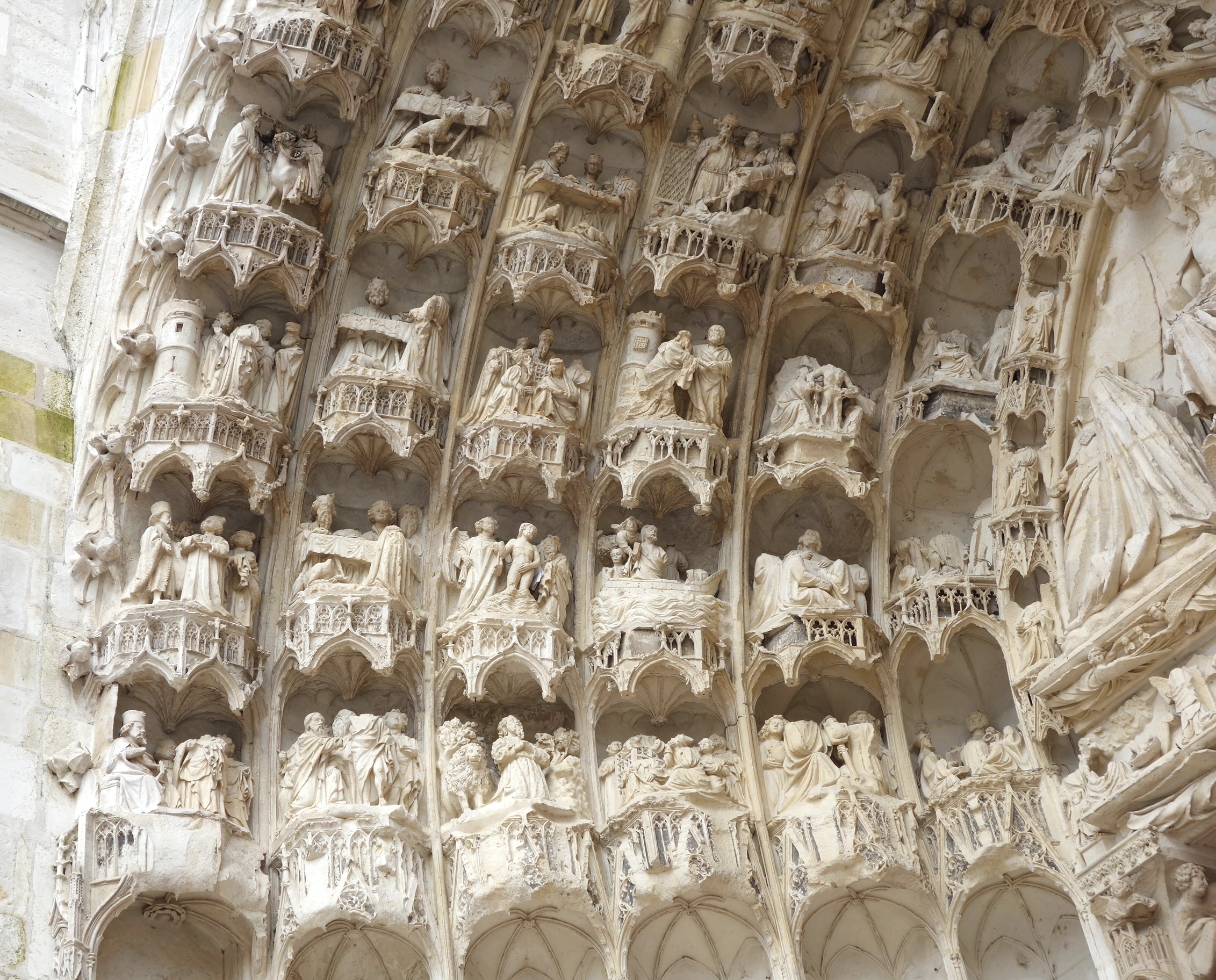 Les voussures contiennent des statuettes représentant les apôtres. Elles sont décorées de 66 scènes.