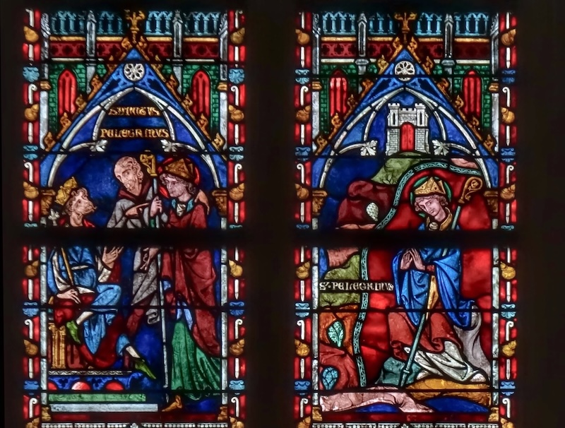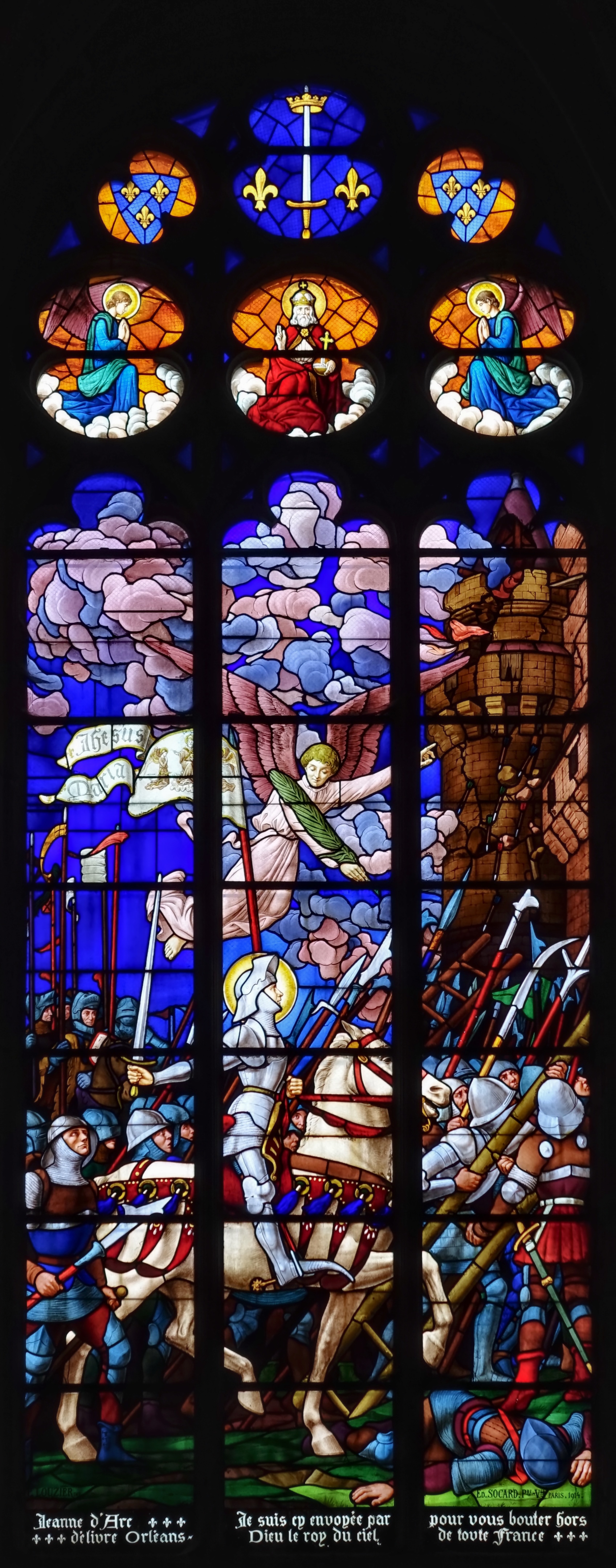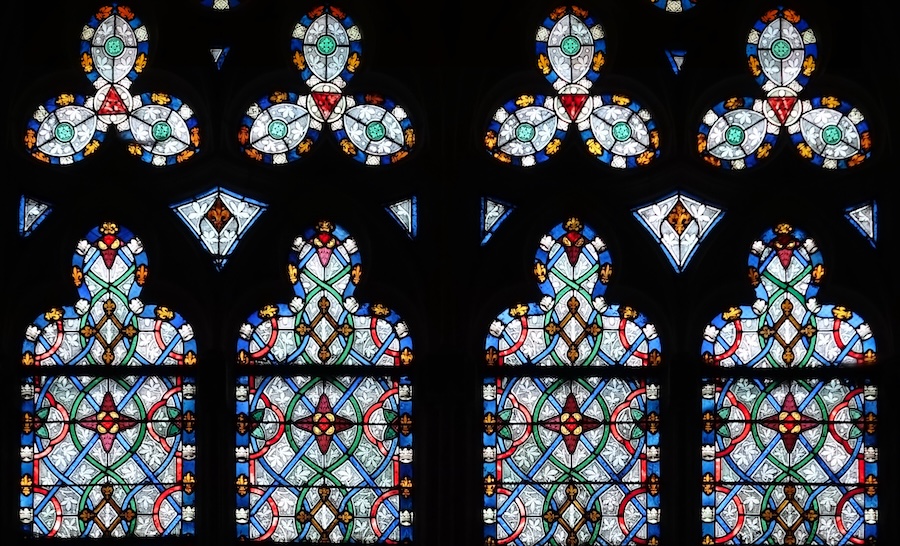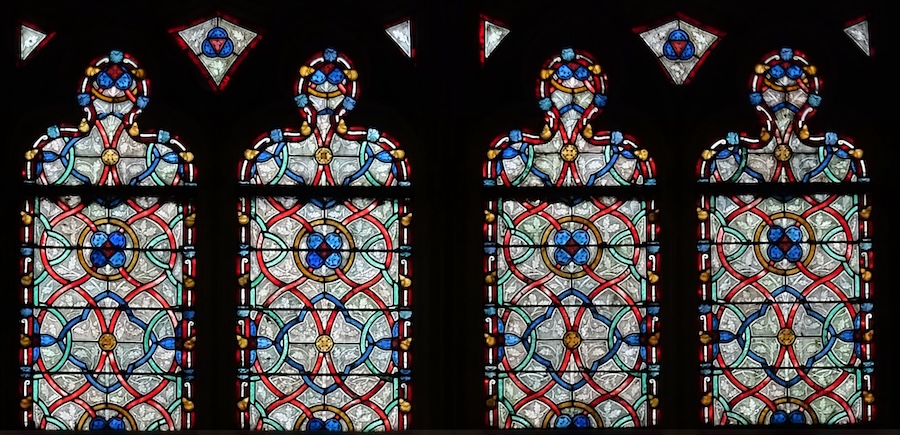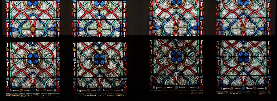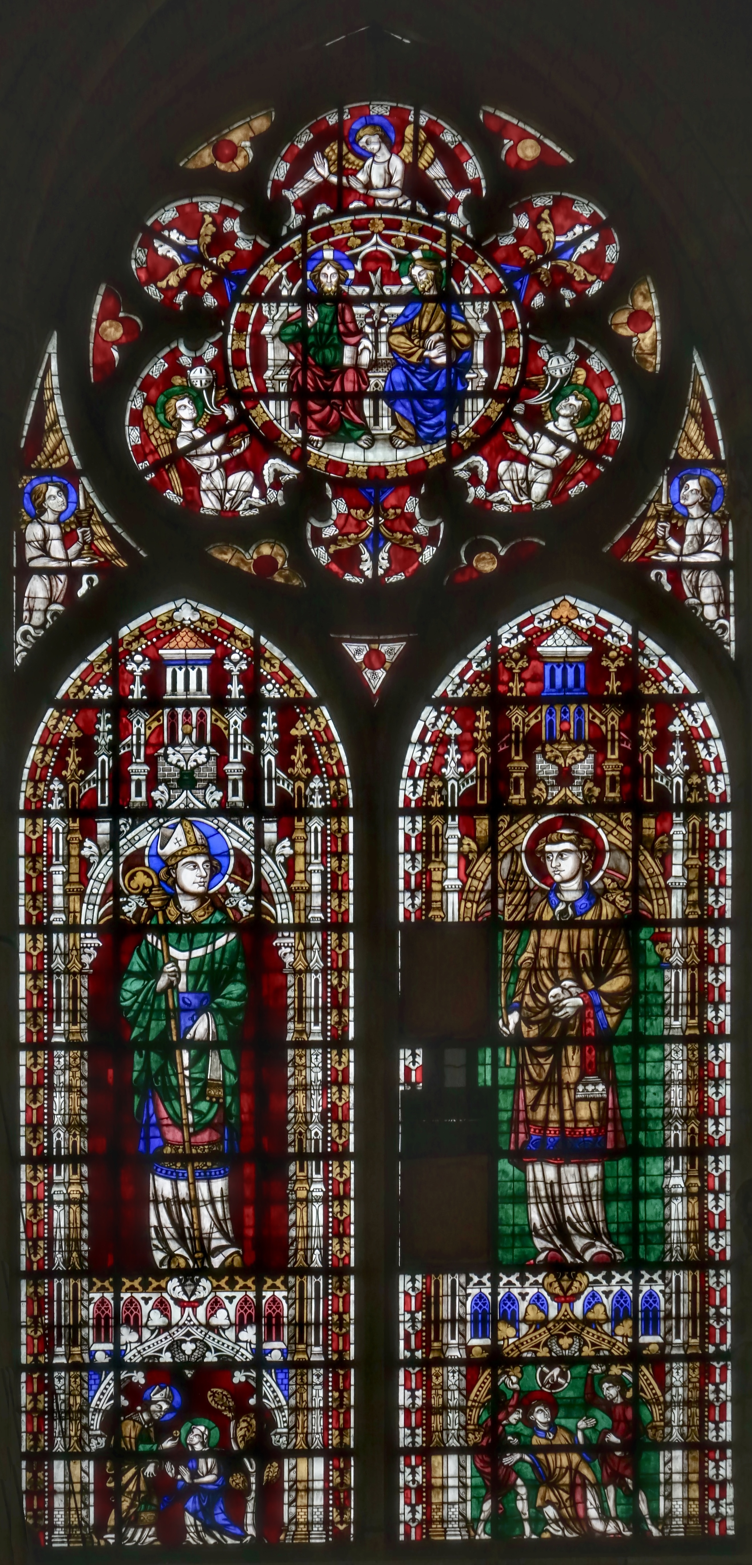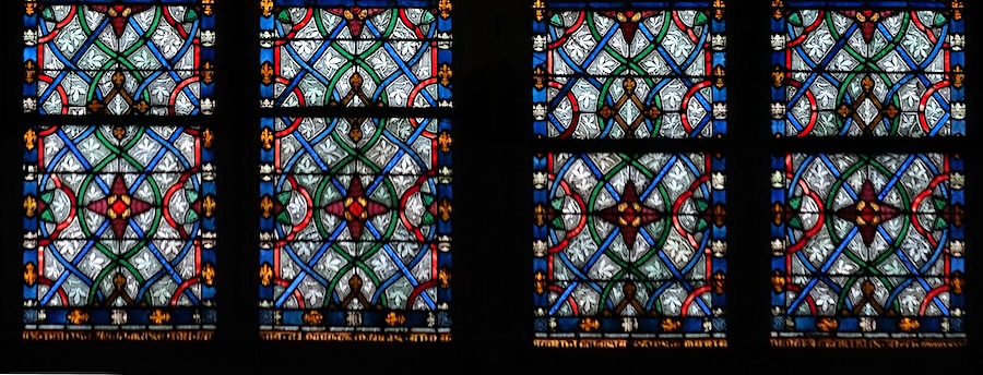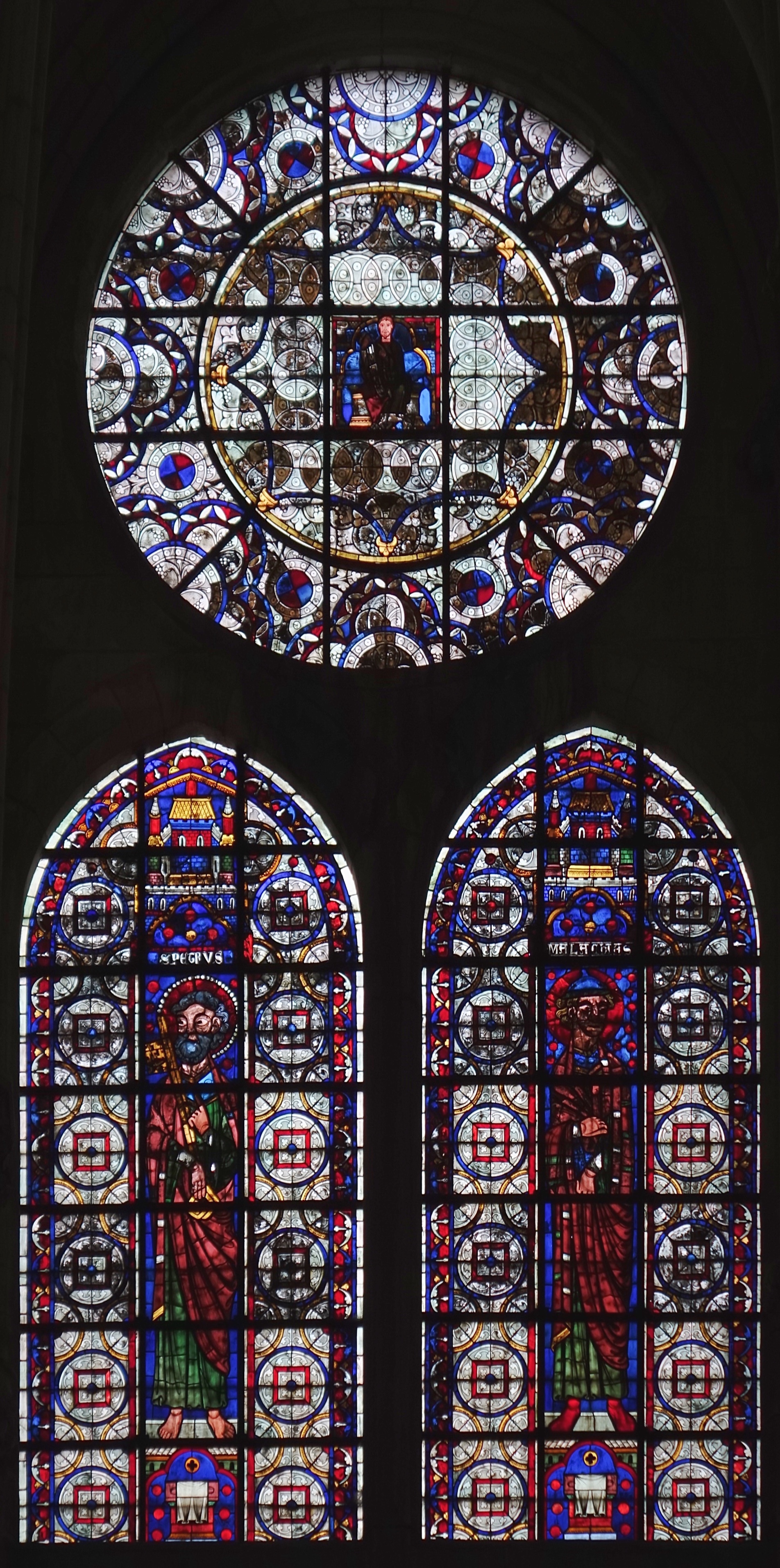 Les hautes baies du chœur renferment des vitraux du 13e siècle. On y voit des apôtres, des prophètes, des saints, et, dans les rosaces des deux baies voisines de la baie centrale, la représentation, à gauche, des Vertus et des Vices, à droite, des Arts libéraux.