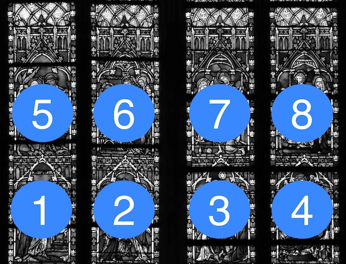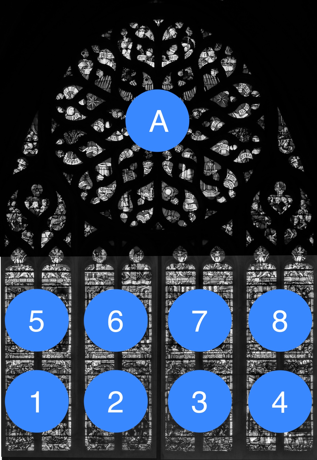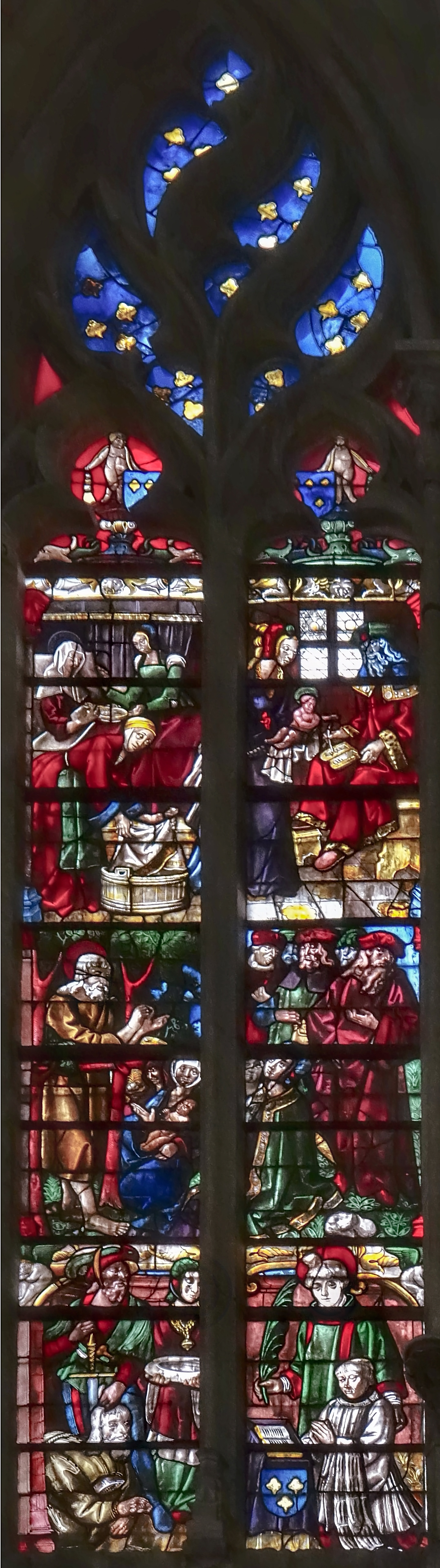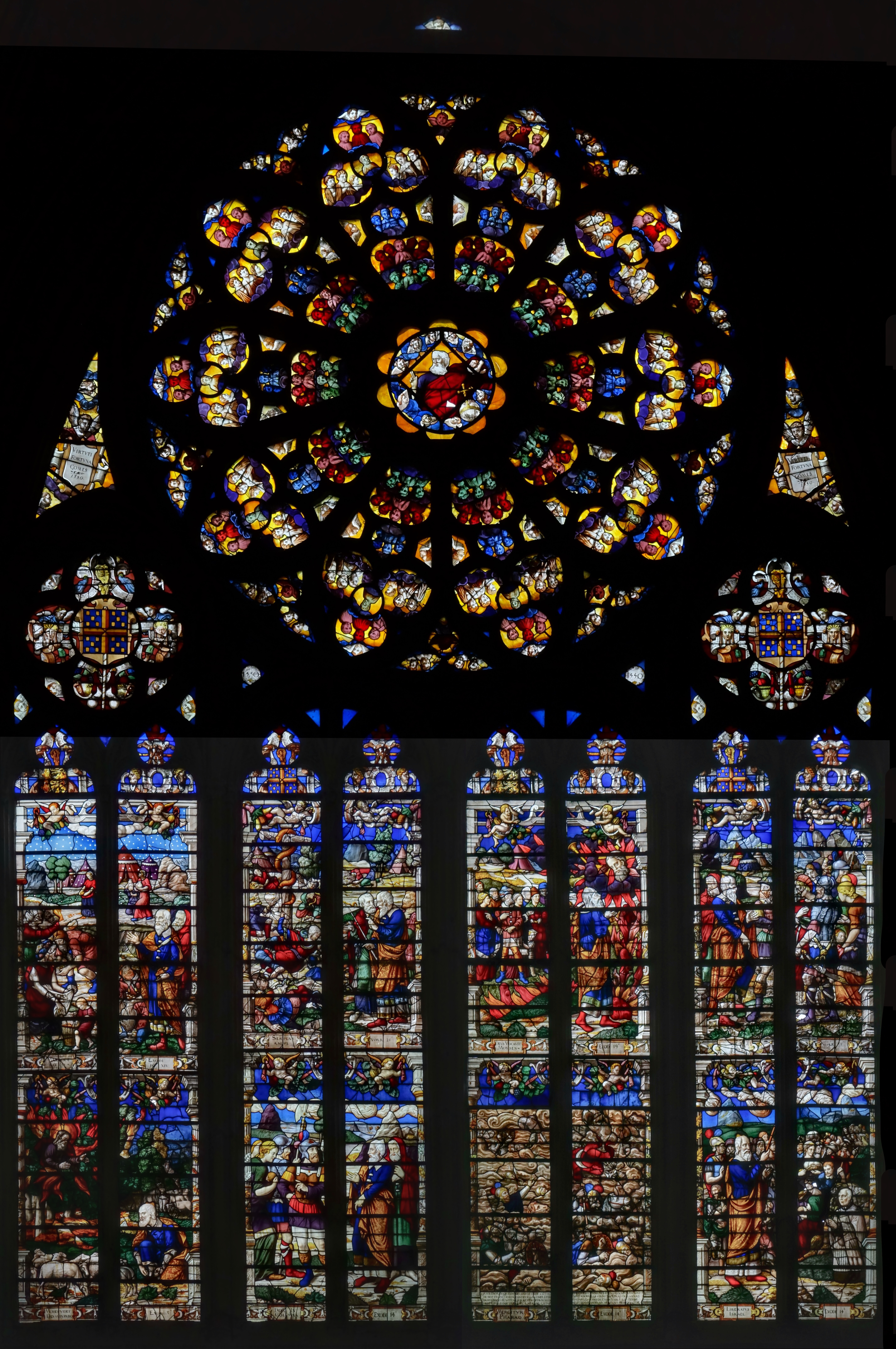 Au nord sont représentées les figures emblématiques de la Vierge et, au-dessous de la rosace, l'histoire de Joseph et ses frères, que peignit en 1528, Germain Michel.